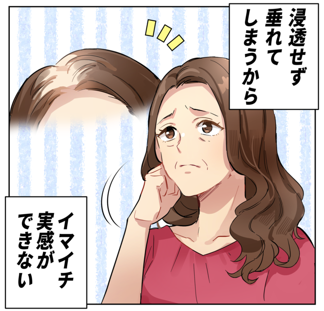 実は私も薄毛に悩んでいて。。夫が満足げに使っていたので、こっそり使ってみました(笑)すぐに「これはいいかも」と感じられて正直驚いています。